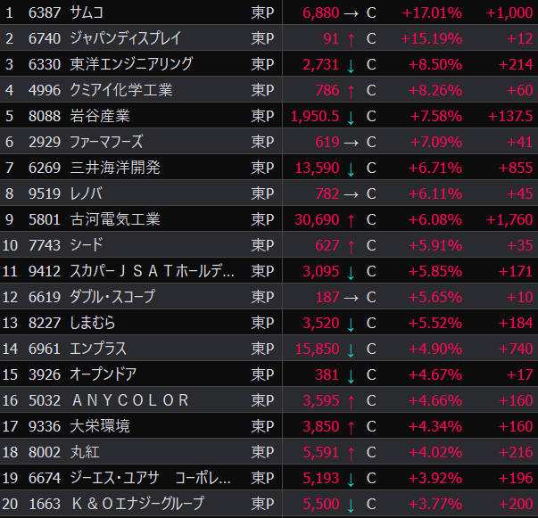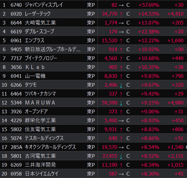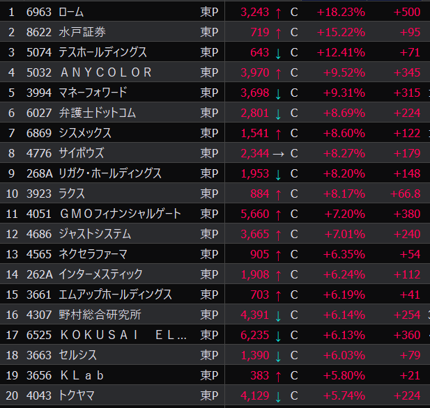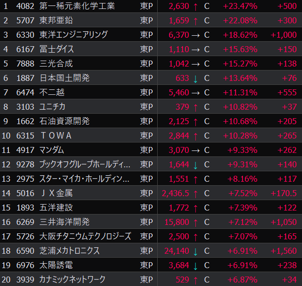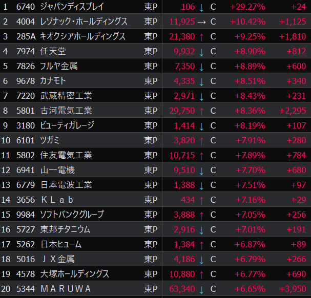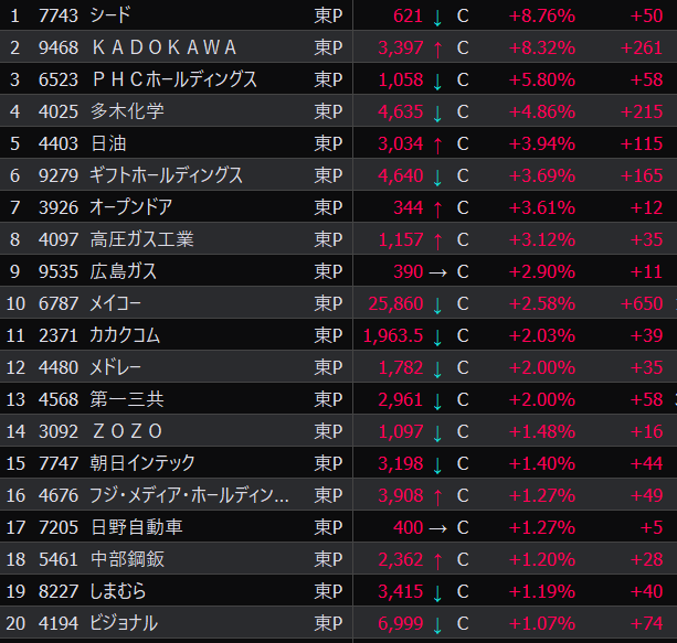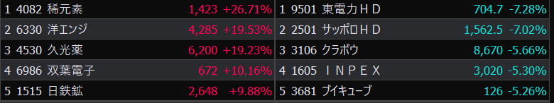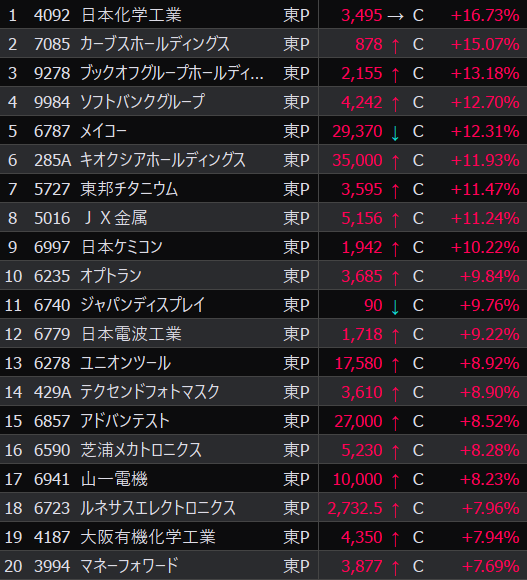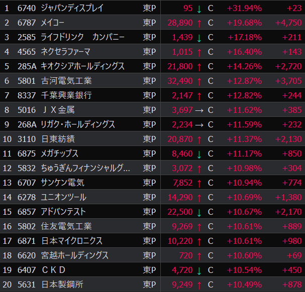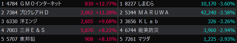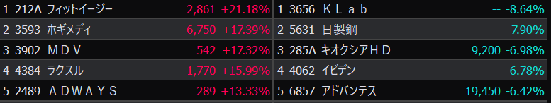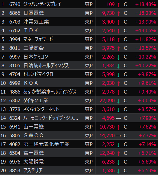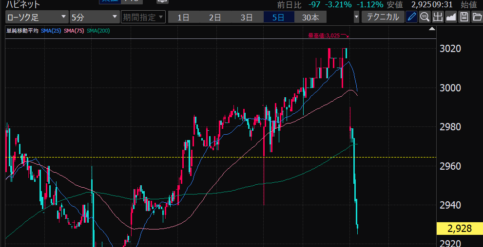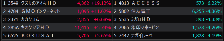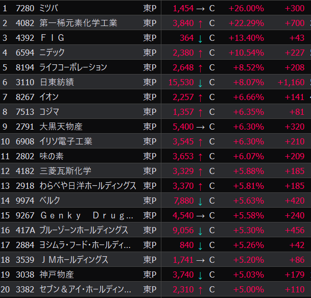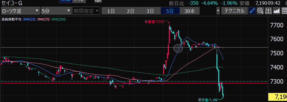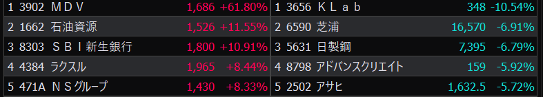 - まさかの本日の値下がり率ランキングNo.1。