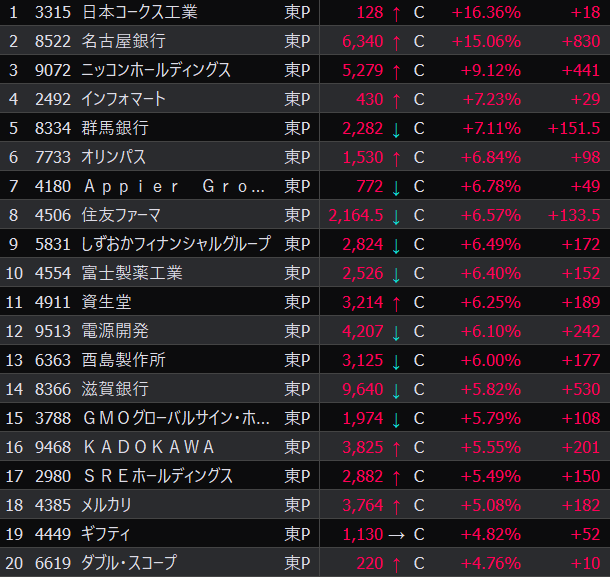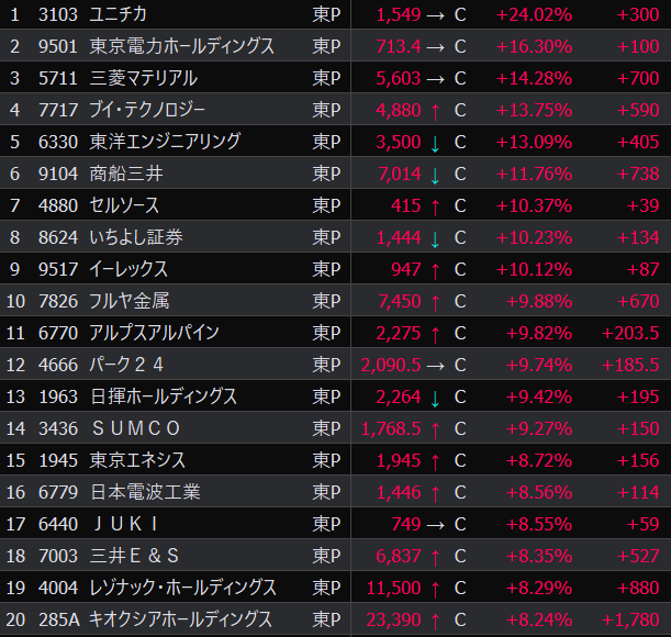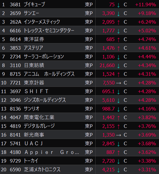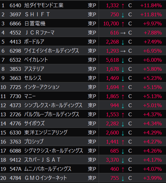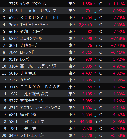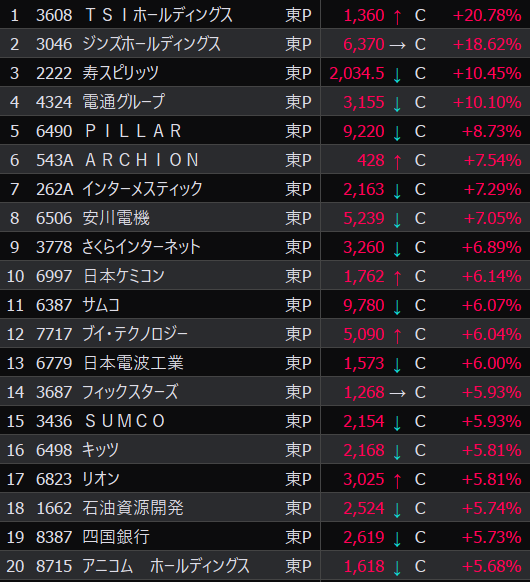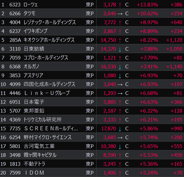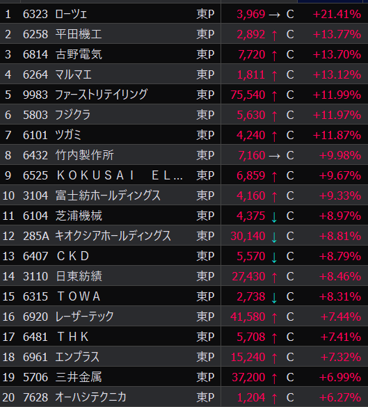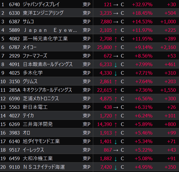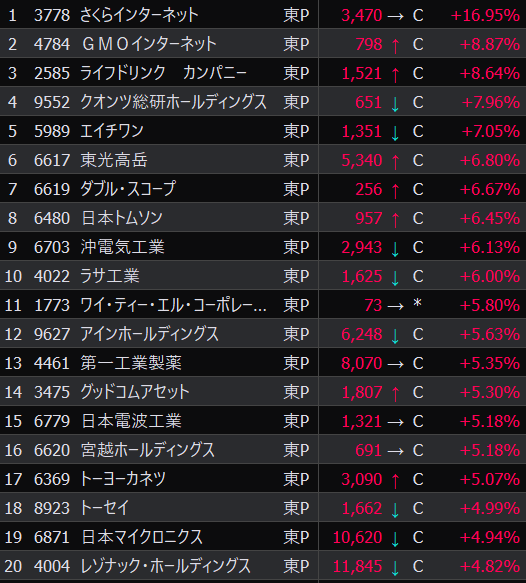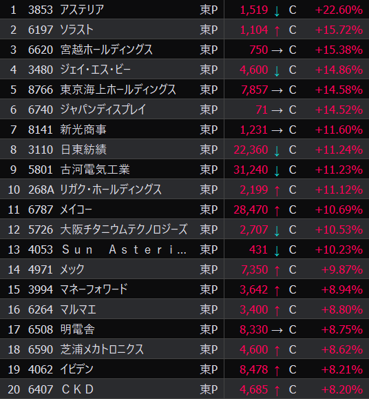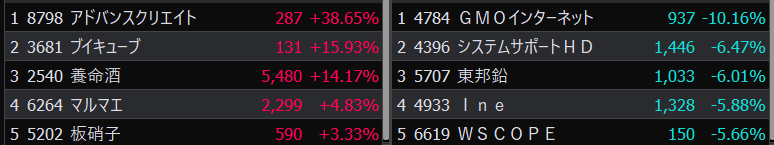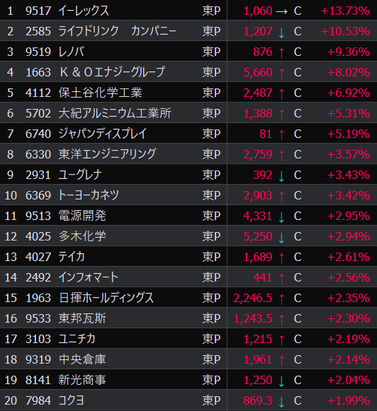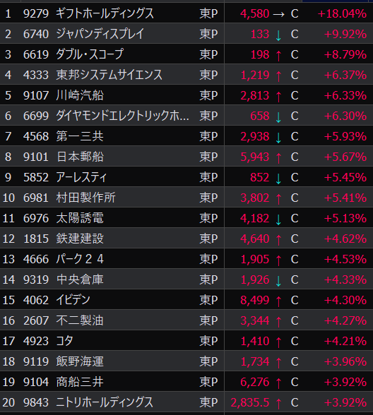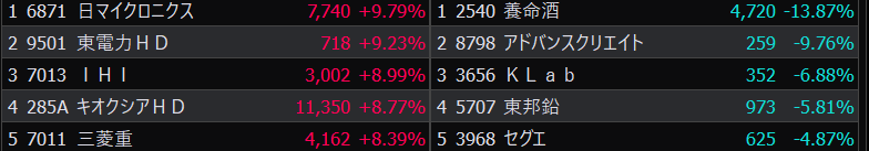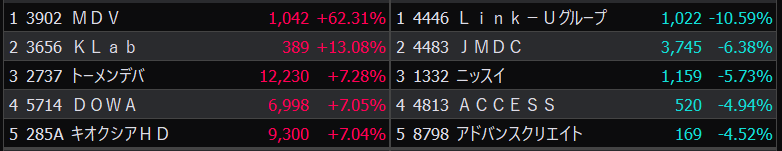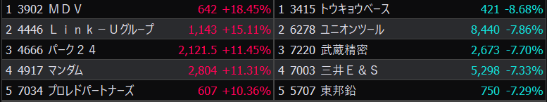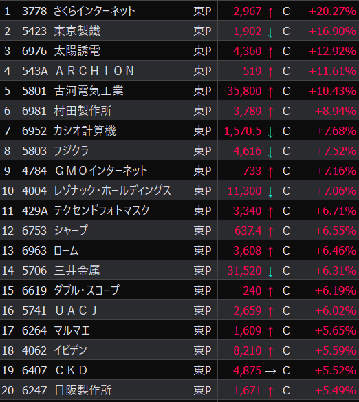 - まさかの本日の値下がり率ランキングNo.1。