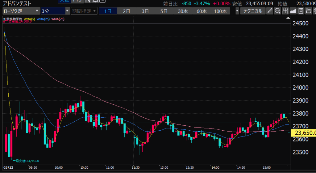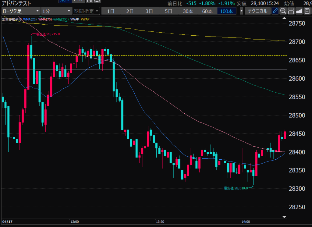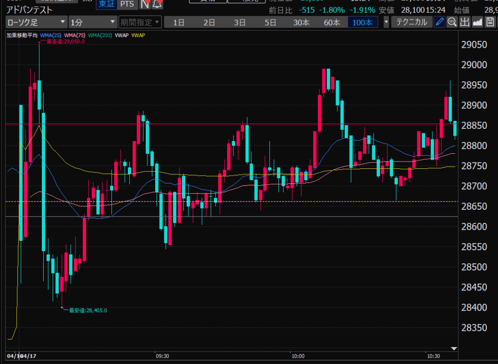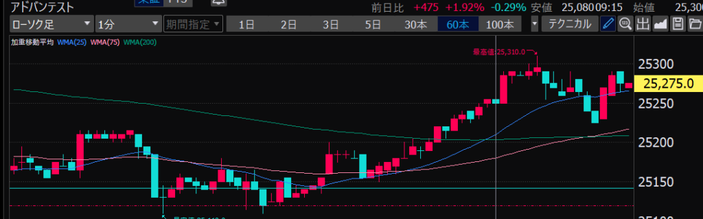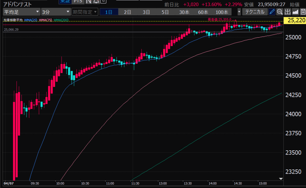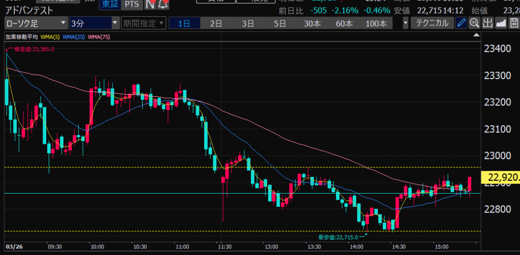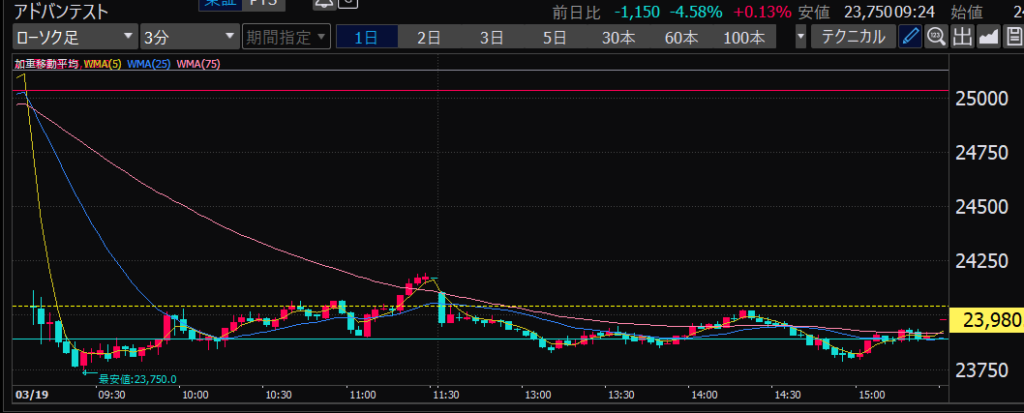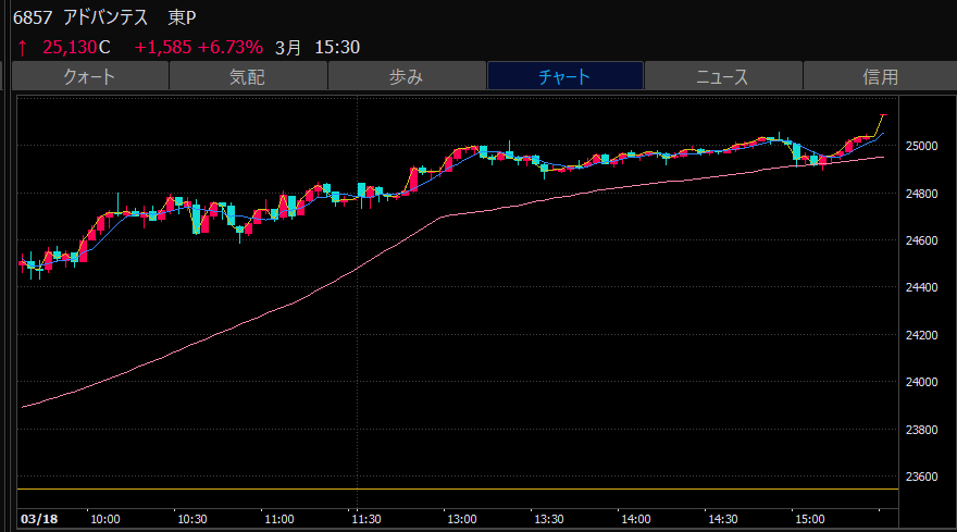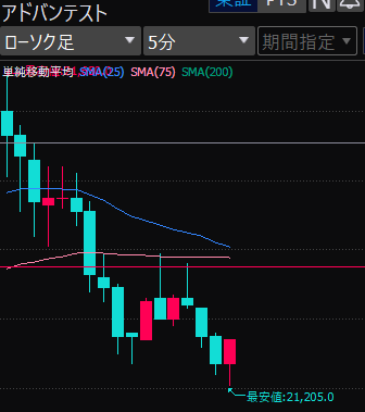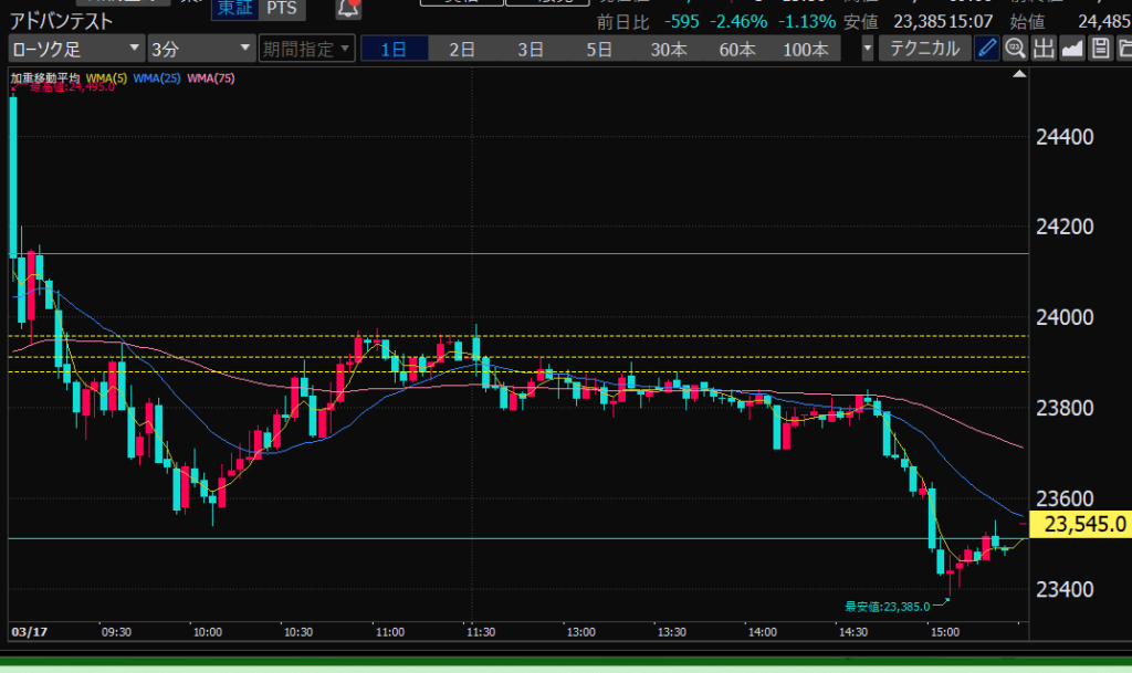 - アドバンテスト、下がるか上がるかはっきりして。イラつく。