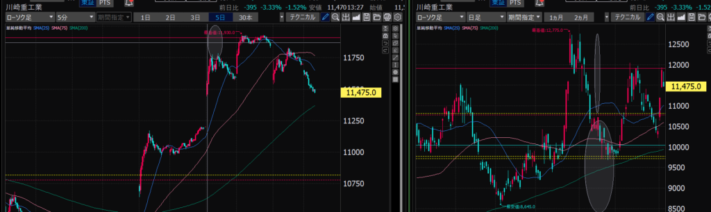 - チャートを見る視点や視野の広さが変わっても、変えるべきじゃないけど、値動きは基本同じ。ただ見る側が変化しているだけ。