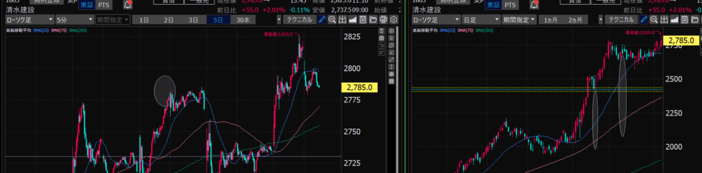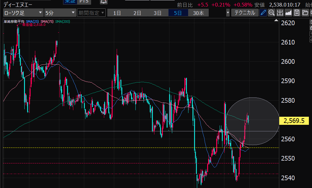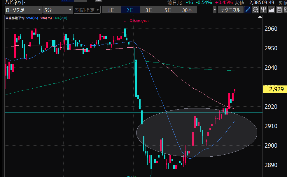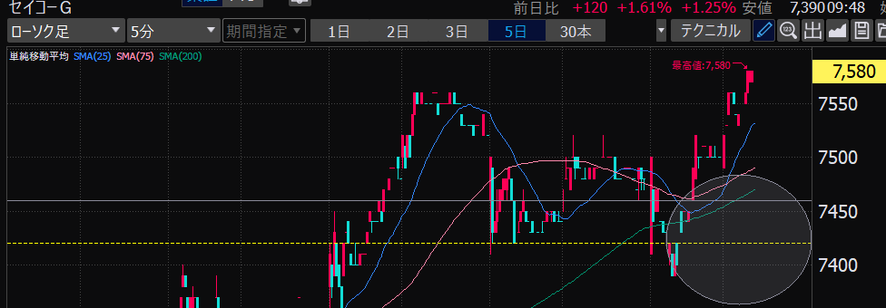 - 75日線の縦断、ねらうにはガマンしかない。
