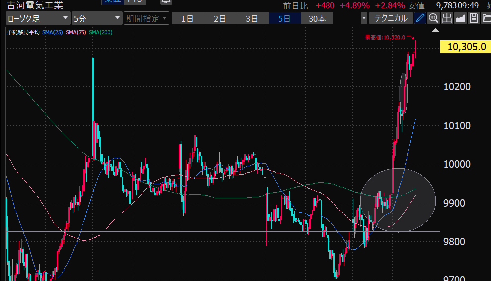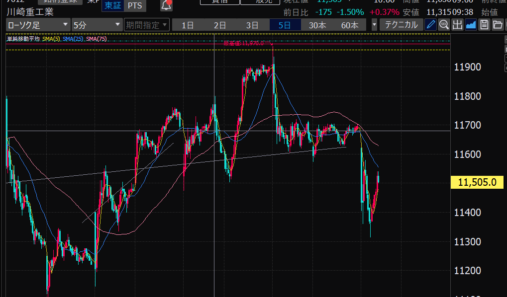 - 基本は75日線をまたぐ上下動ねらい。それ以外の値動きはイレギュラー対応になる。損切りとか。