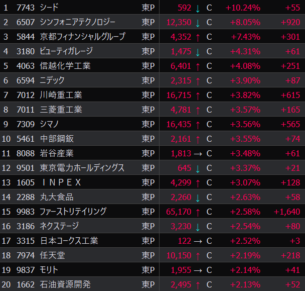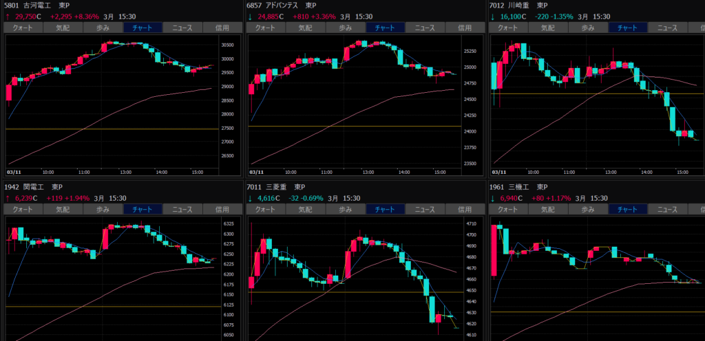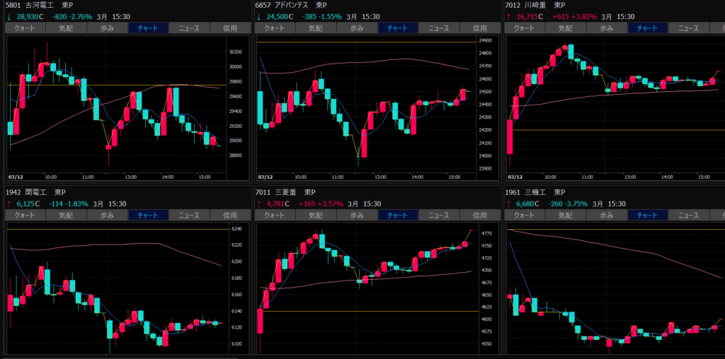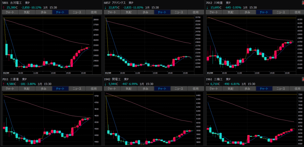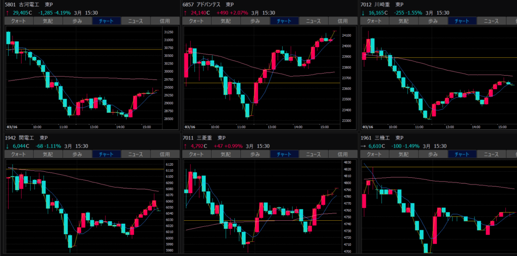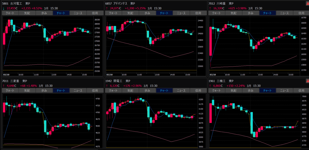- シンフォニア、川崎重工業、三菱重工業、急騰。これはトレンド転換か?売り建てしてる場合ではない?