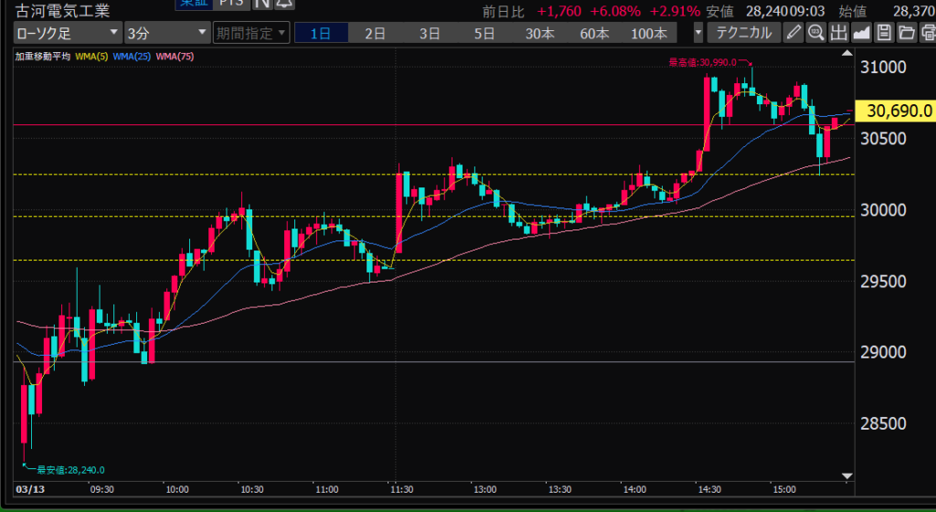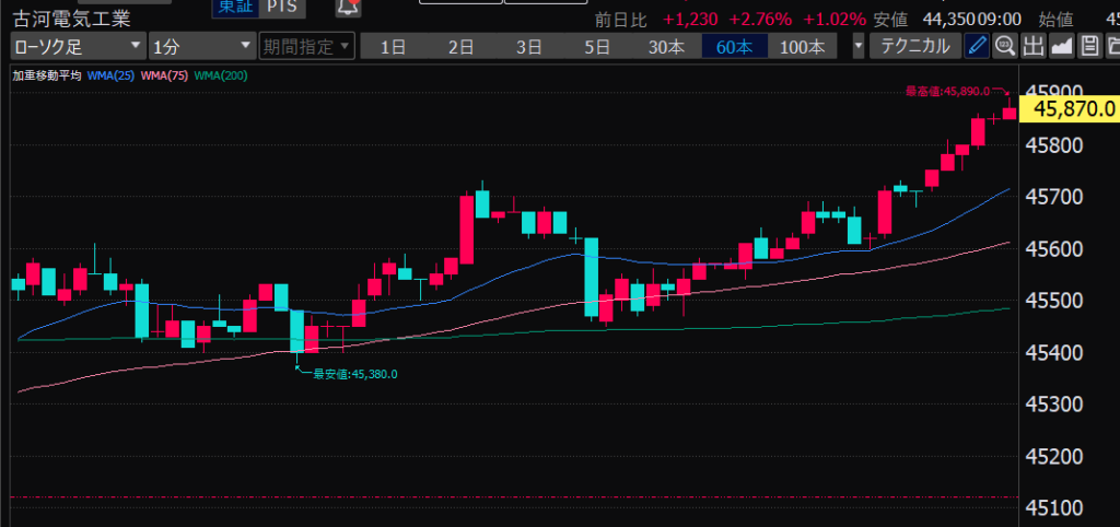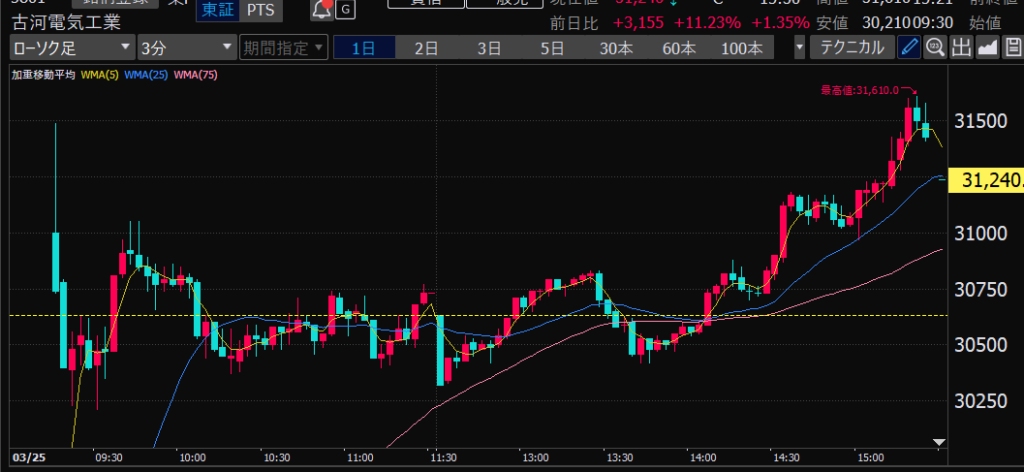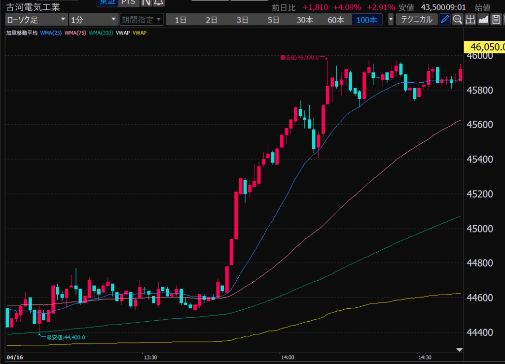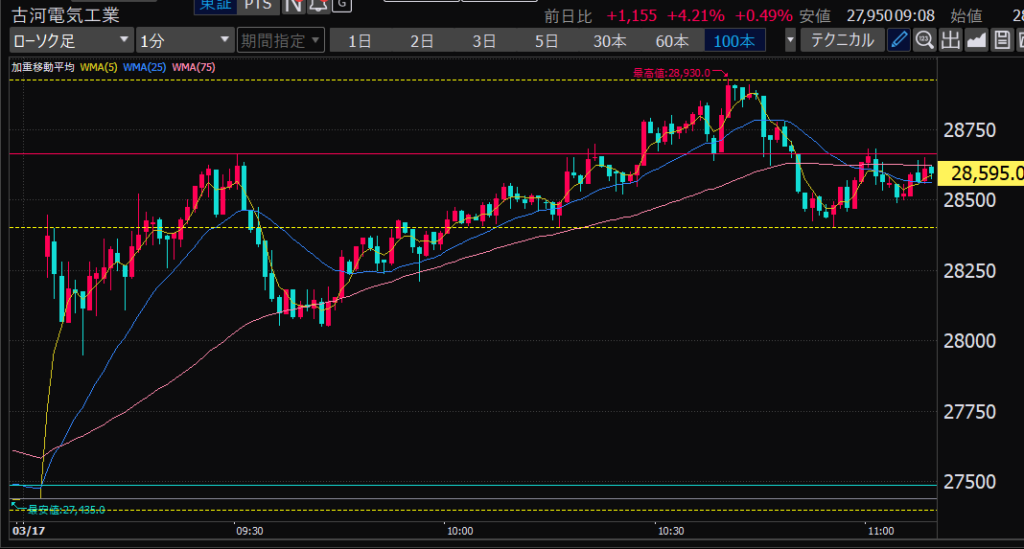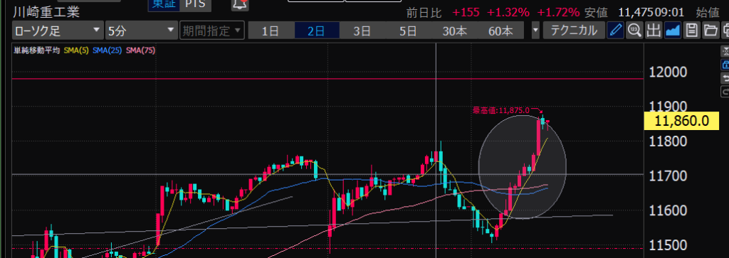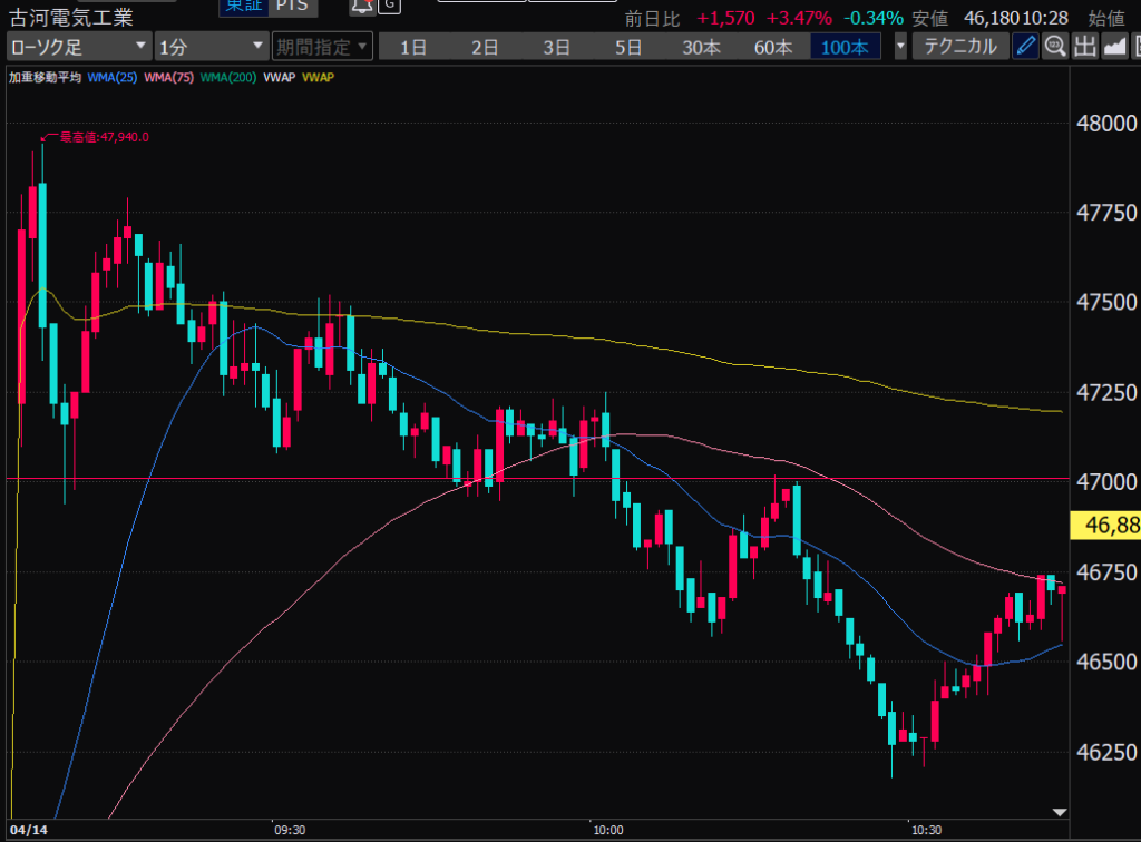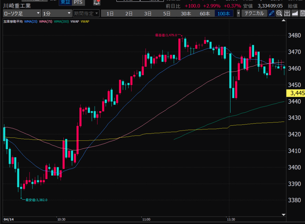 - 前場だとどの時間帯か?値動きが大きいのは前引け直前。ねらい目。