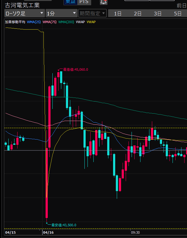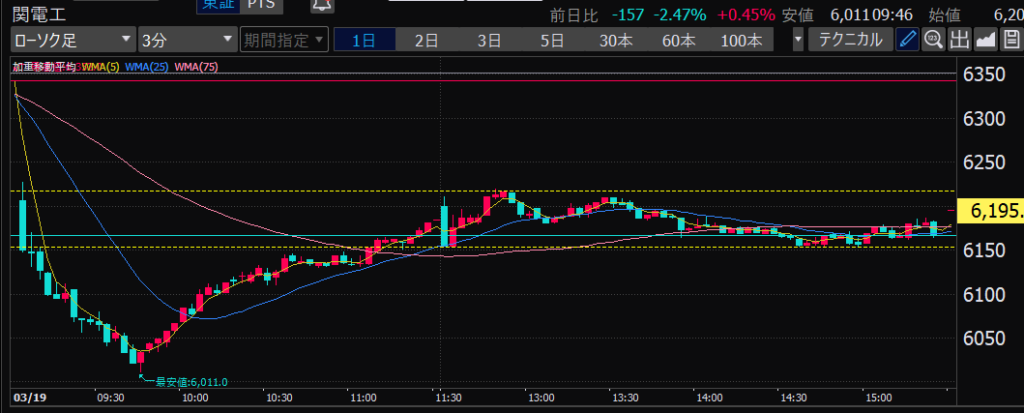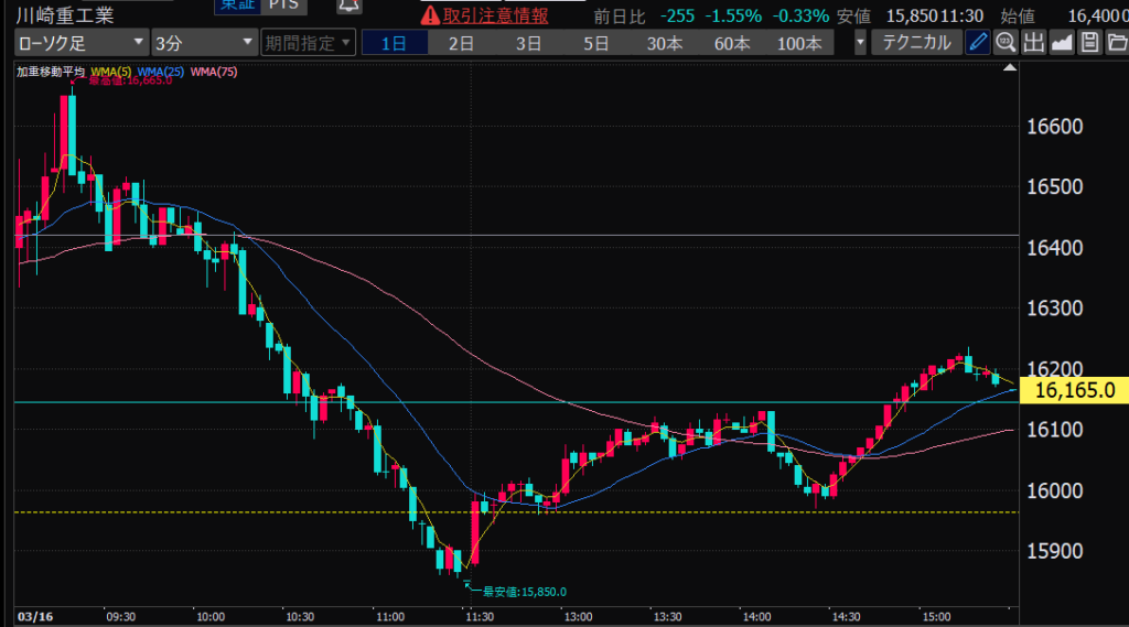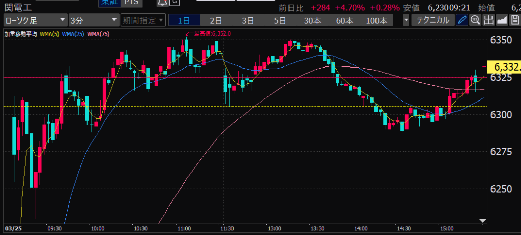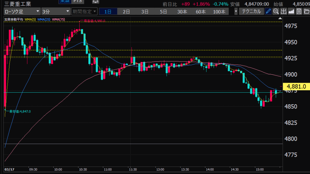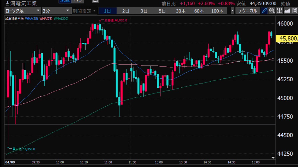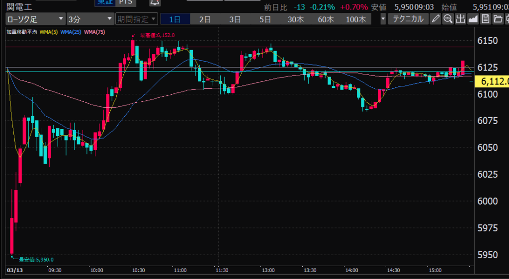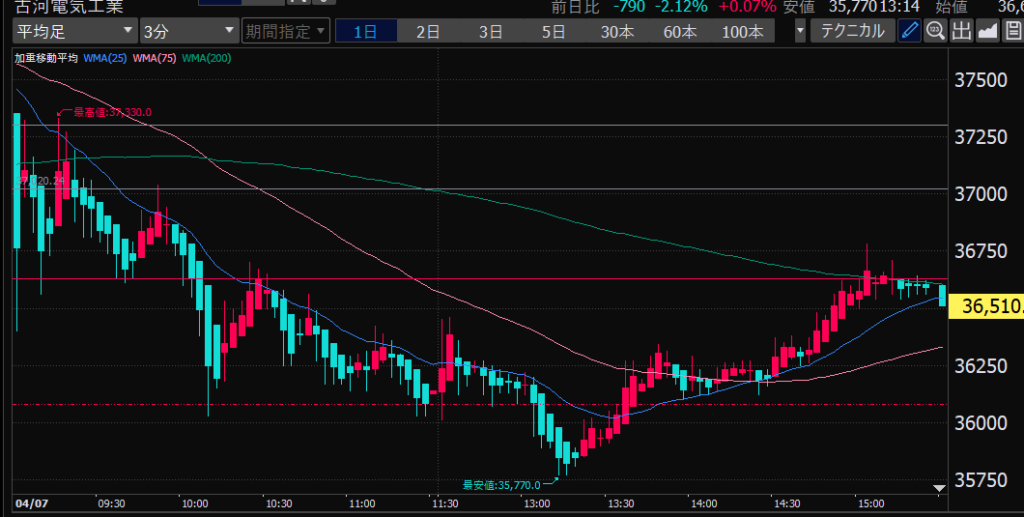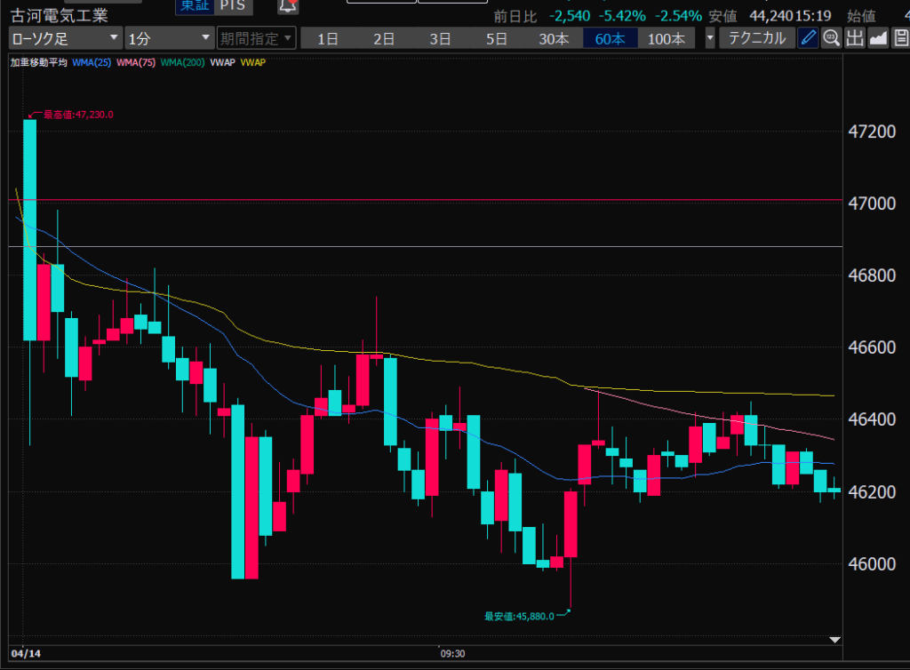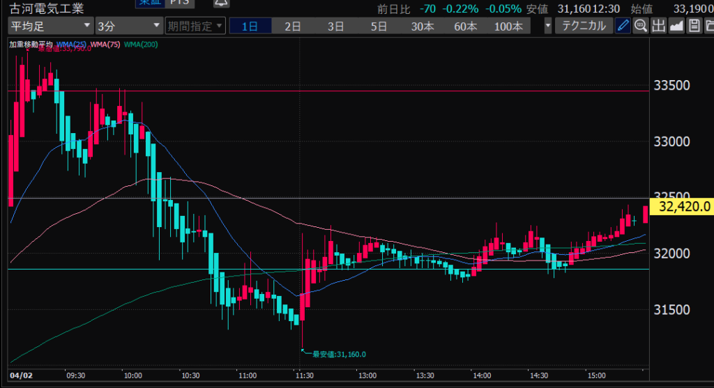 - 後場は大体だけど、特に14時から15時のあたりが値動きが少ない。このへんでデイトレしやすいか。