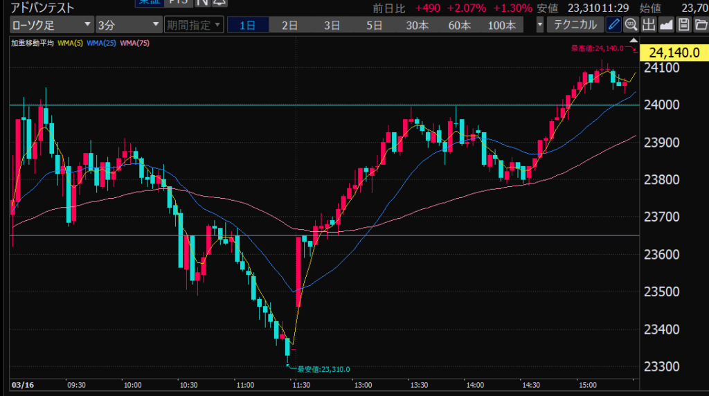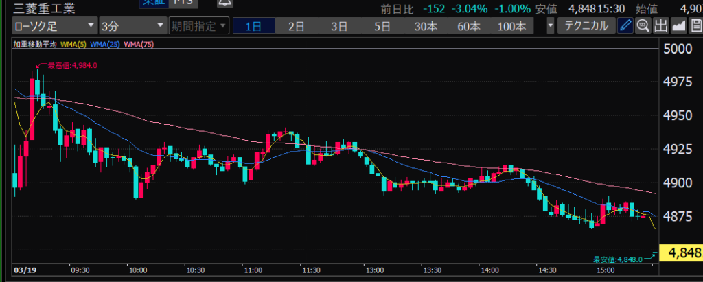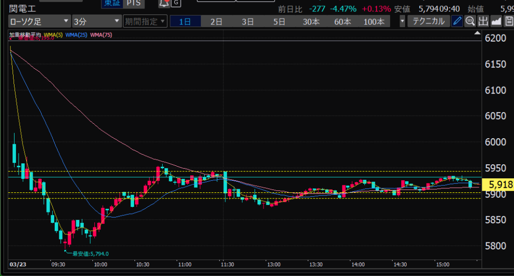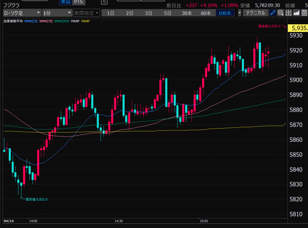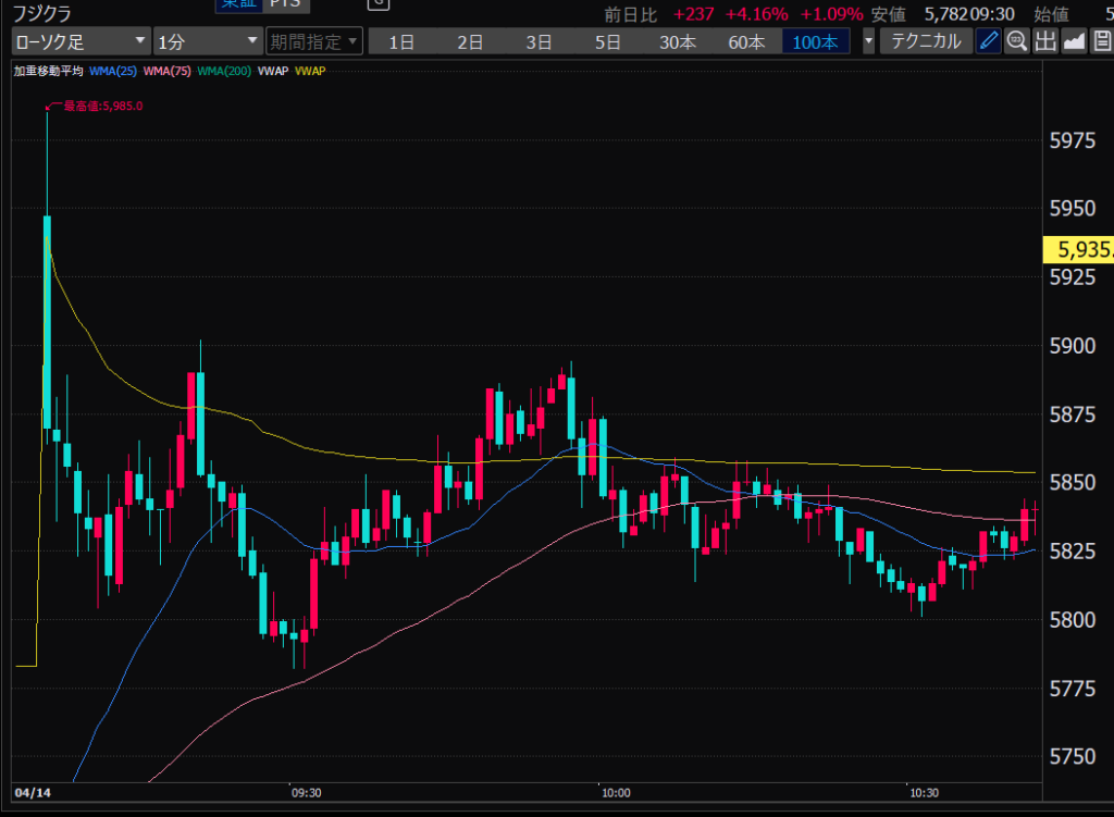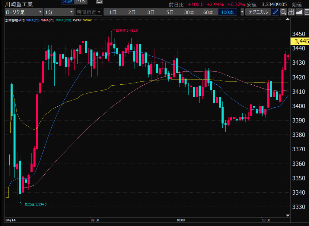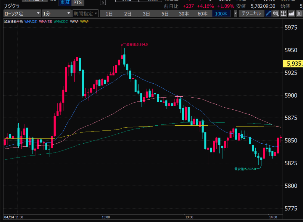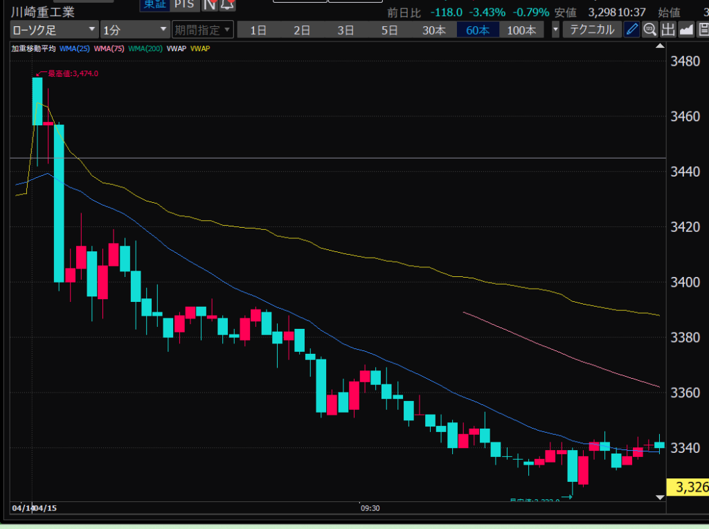 - 前引け大引け前に利確をガマンできず、相場が再開すると大きな利幅を逃し、そのあとグダグダに。
