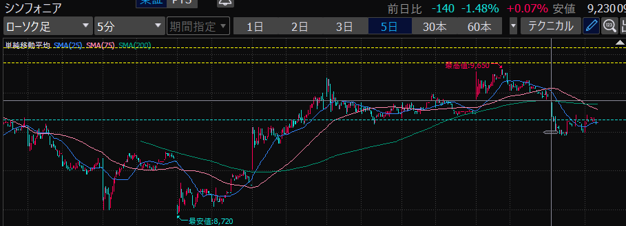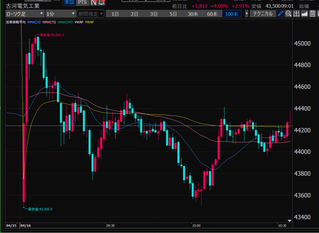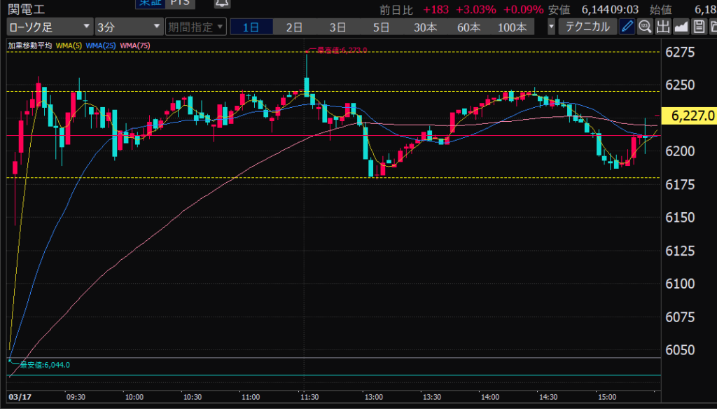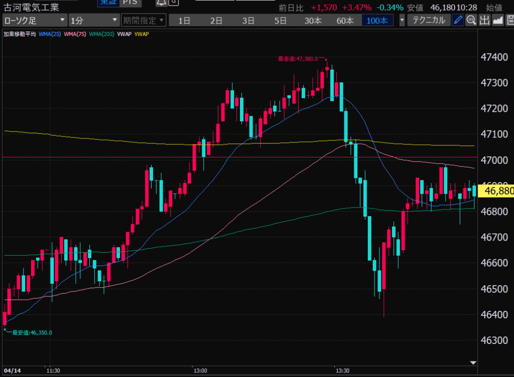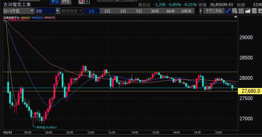 - 後場はデイトレ向きだと思う。ヨコヨコが目立つ。