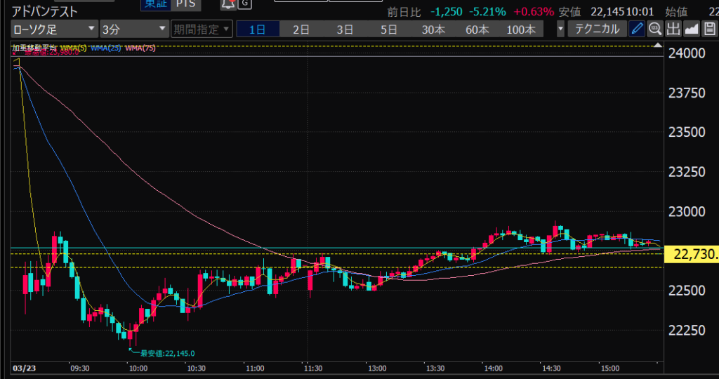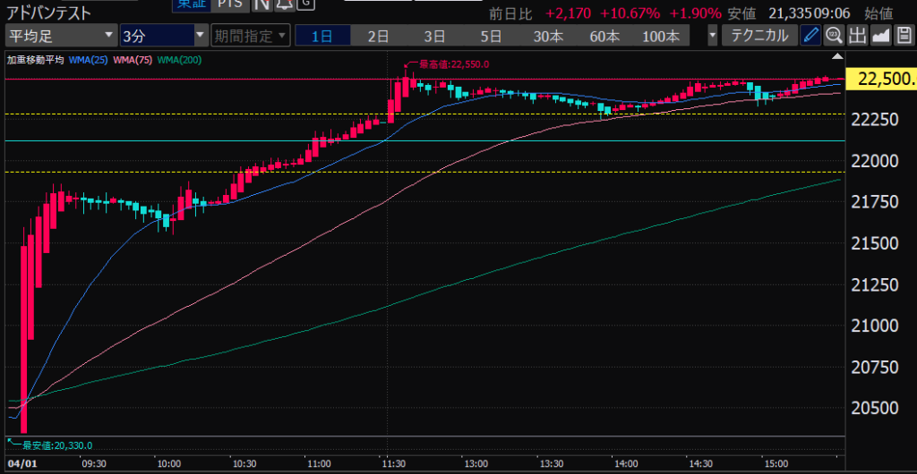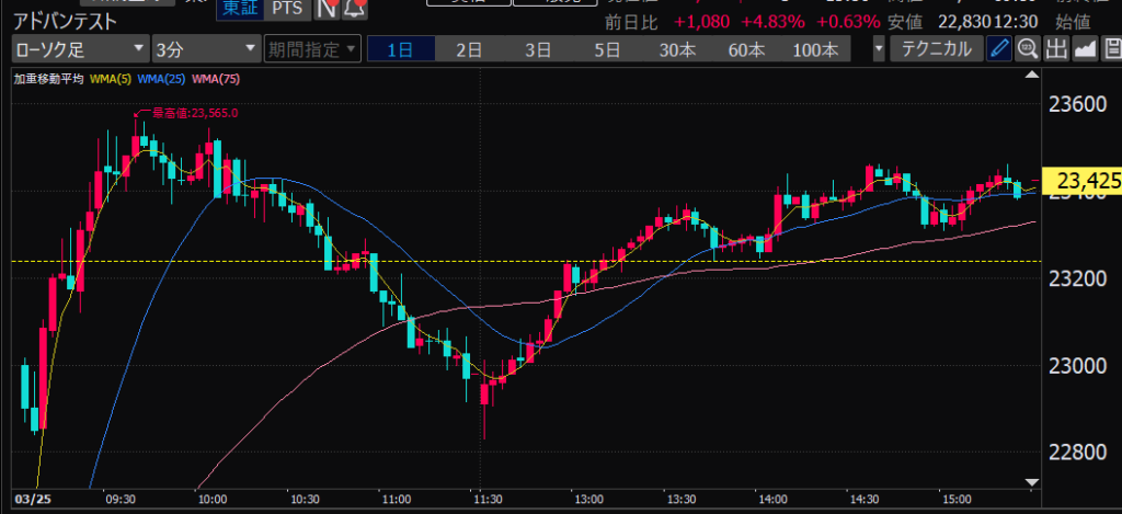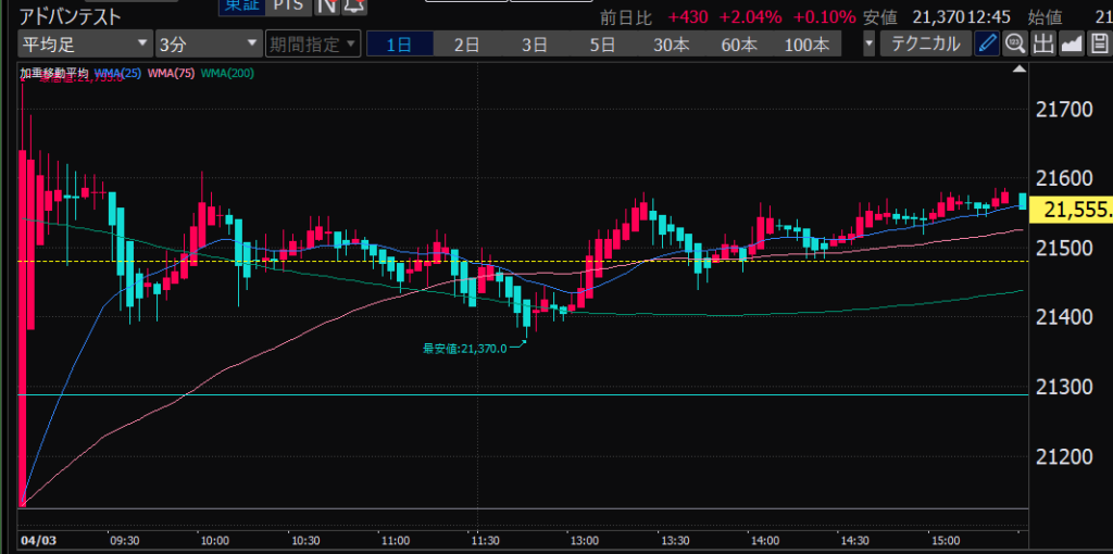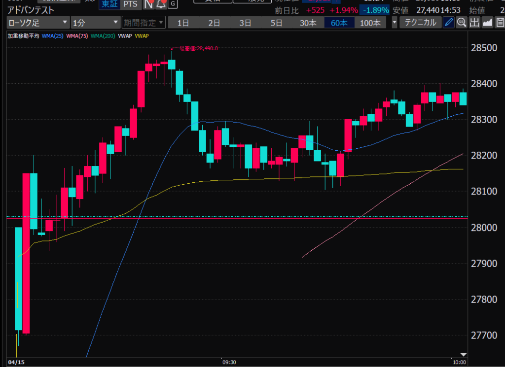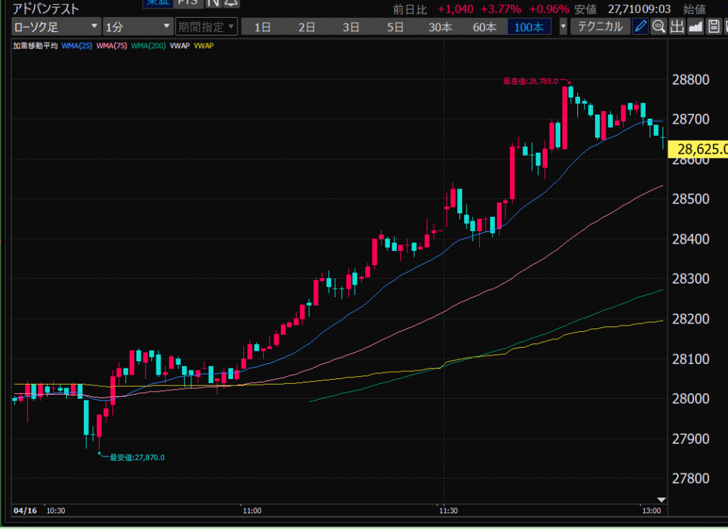 - アドバンテスト、今日の値動きから、朝イチのチャート、山谷ができたところからそこを超えるか超えないかでエントリーやイグジットを決めるのはどうか?短期的な波を乗りこなせるかも?